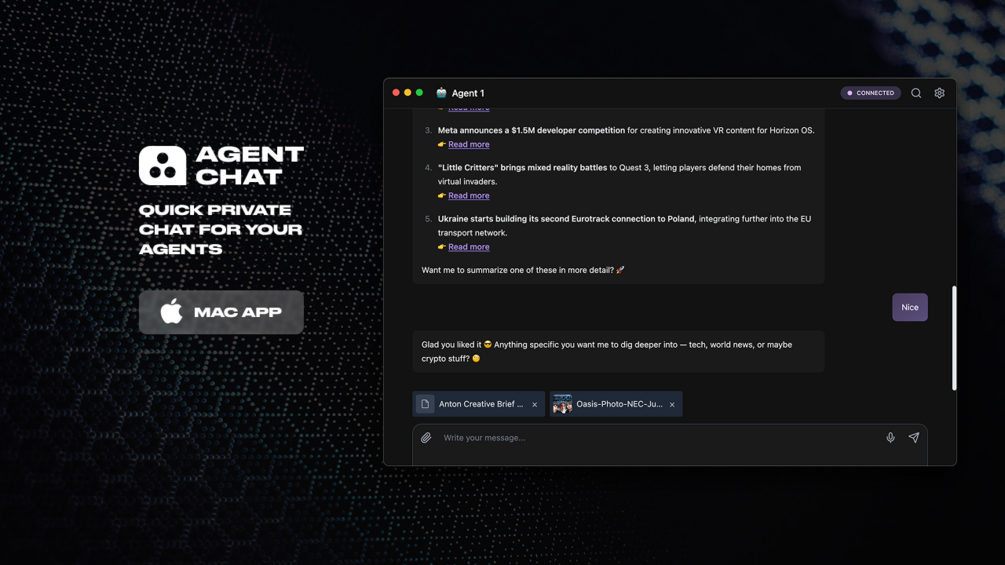 - Download and install Agent Chat on your Mac.