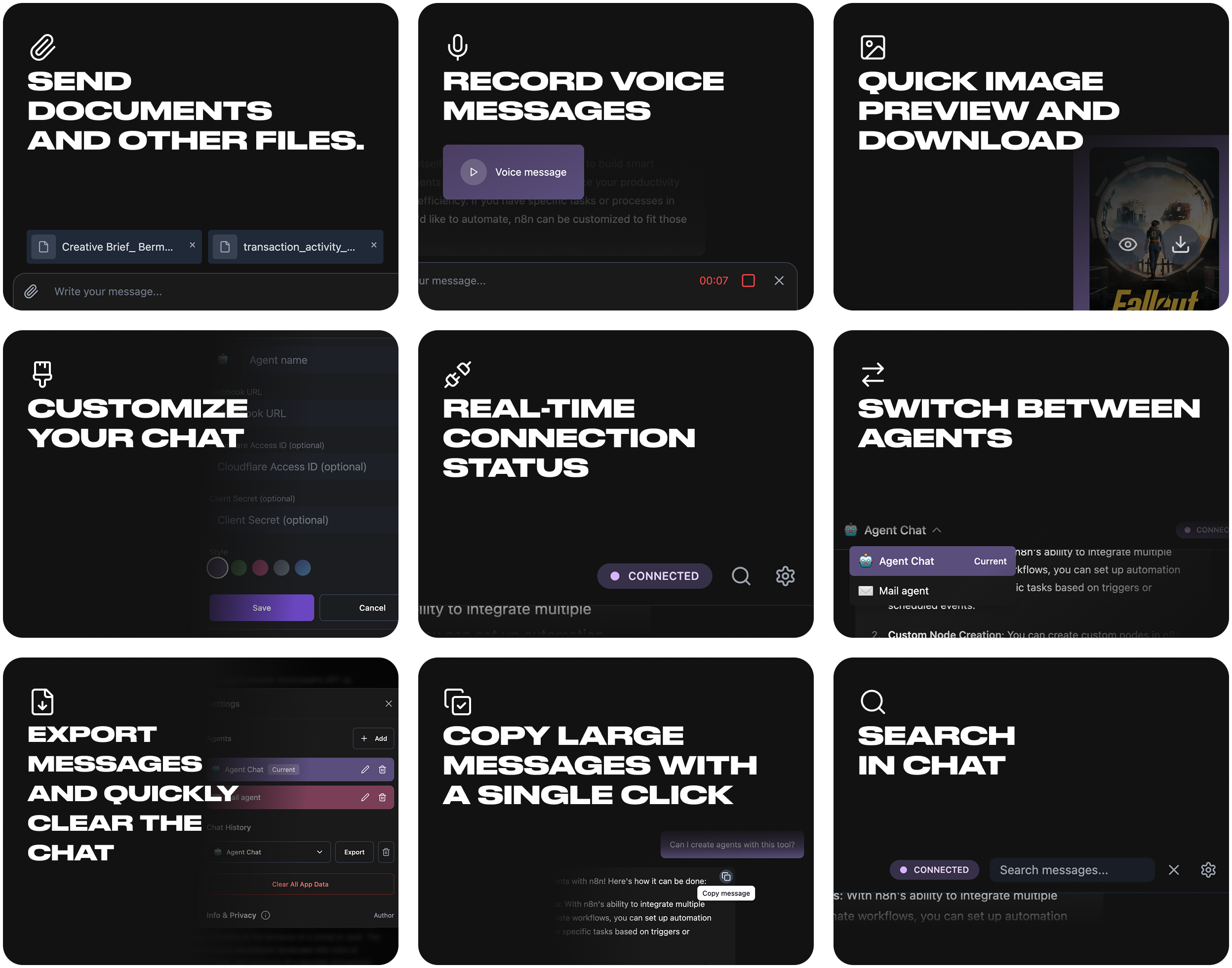 - Connect multiple agents with a separate chat for each.